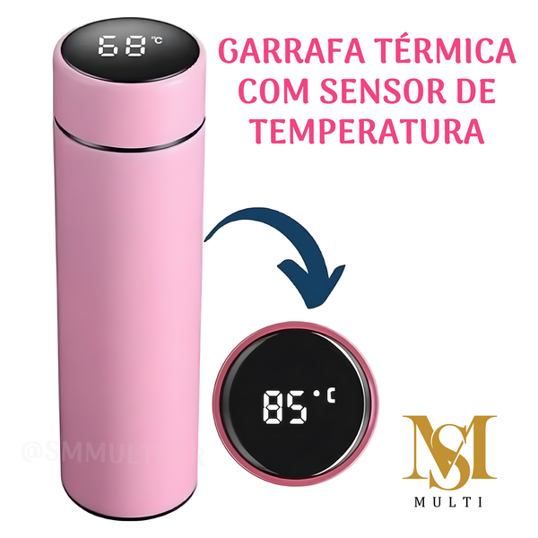Com sensor de Temperatura, 500ml, em aço inoxidável, display de temperatura digital em LED - Portátil e durável R$ 35,00