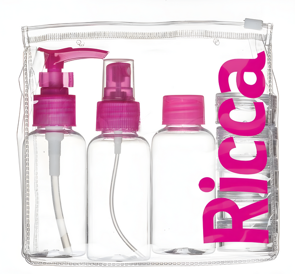 Contém 3 frascos de 50ml com tampas sortidas, 3 potes de 10g, 1 pente dobrável